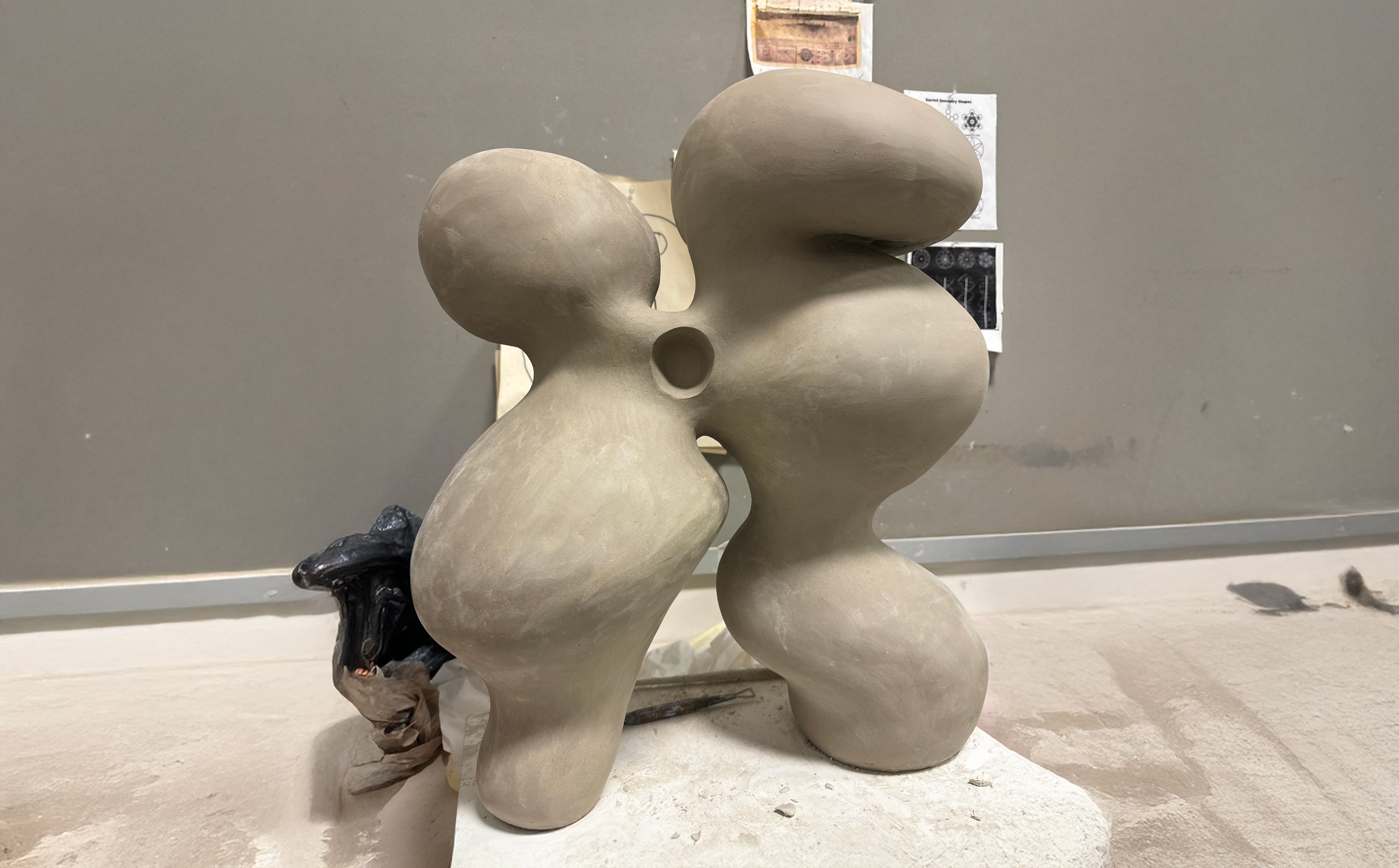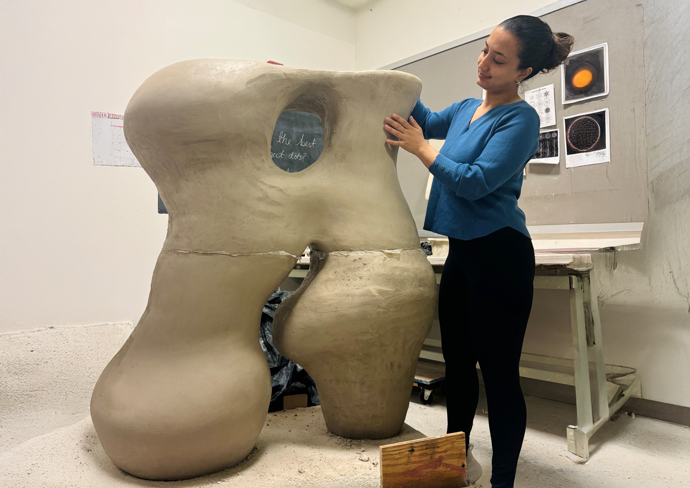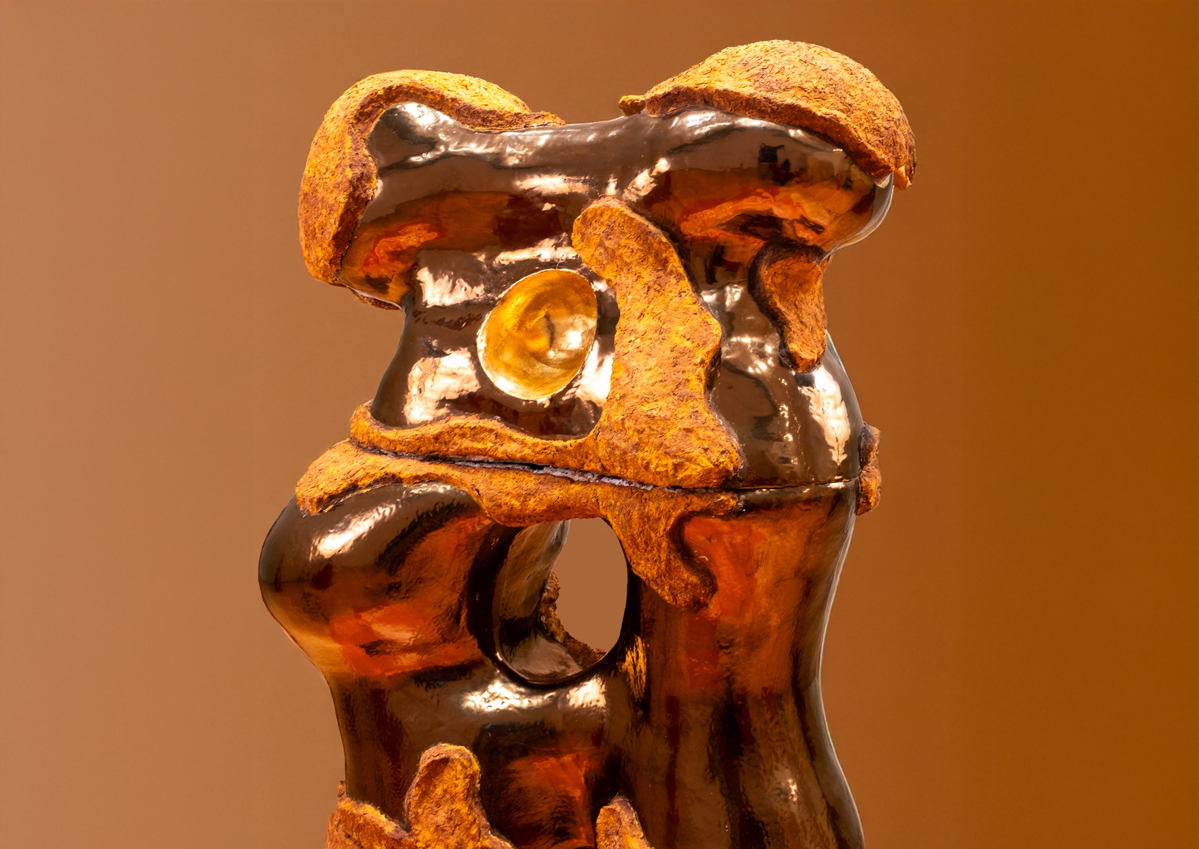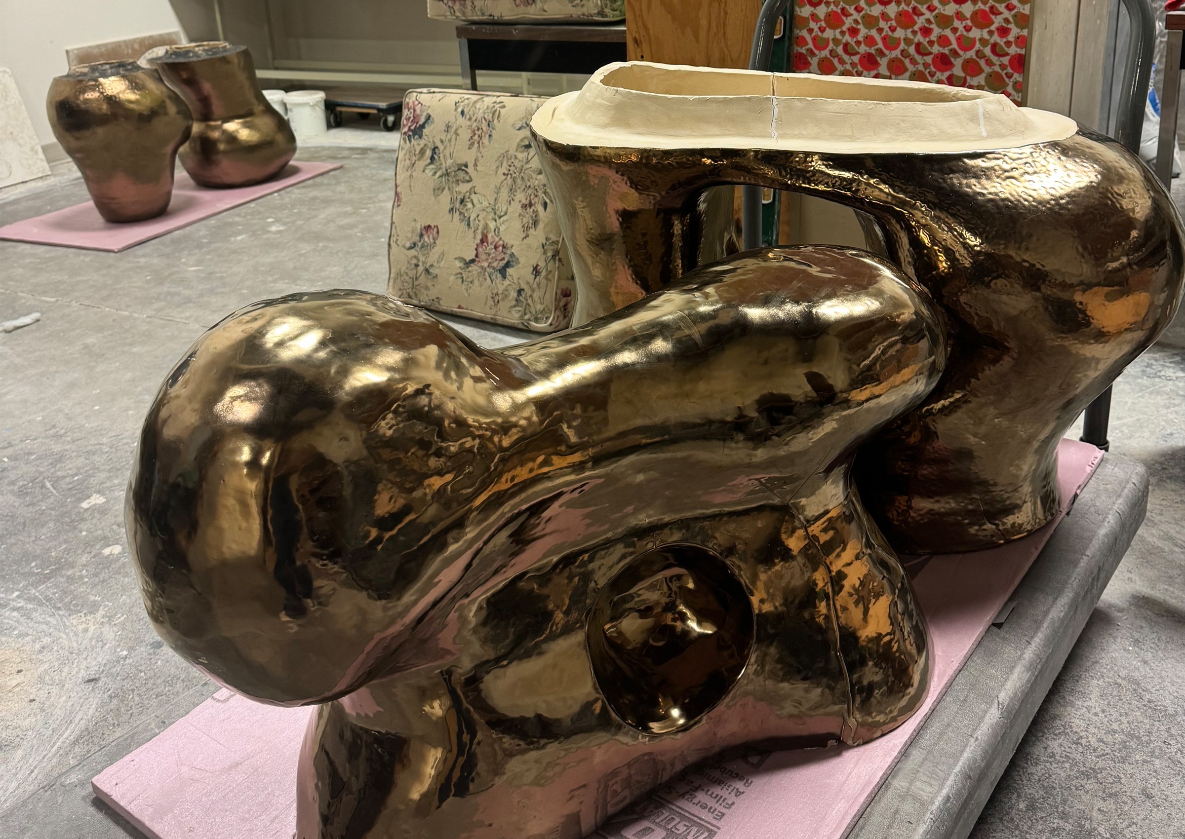 In Sacred Radiance, I return to the inner terrain, where form dissolves into energy, and the seen meets the unseen. This body of work is a continuation of my mining series, now illuminated by gestures, pigments, and a deeper invocation of ancestral memory. Each sculpture unfolds like a mantra in motion- gestural forms that hold breath and silence, tension and release. The spaces carved between curves are not voids, but living presences, portals of absence that invite stillness, reflection, and possibility. Color moves like energy across the work. Seven chromatic echoes, drawn from the spectrum of self, shimmer across the surfaces of my new addition of sculpture. The spectrum is not decorative, but alchemical: a meditation on how inner frequency shapes outer form. The pedestals are painted in the deep red earth of Nepal, a hue drawn from the ritual painting of village homes, where soil becomes sacred during festivals and transitions. This grounding red is more than a foundation, it is a prayer whispered through generations, now holding contemporary form. Threaded through the work are the marigolds, not in bloom, but in spirit. In Nepal, they are offerings, tokens of devotion, celebration, and reverence. Here, their shifting shades of yellow and saffron speak to enlightenment as the dawning of awareness, the warmth of divine presence. At the center stands a singular, monumental form—larger than the rest, yet still. It holds the weight of the series, yet floats in meaning. This sculpture embodies the truth that we are more than our flesh-bound shape, we are vast, luminous, and immeasurable. We are energy, rhythm, and light, pulsing just beyond the limits of perception. Sacred Radiance is a quiet celebration of that inner expanse, an invitation to remember what lies within the folds of breath, ritual, and spirit.