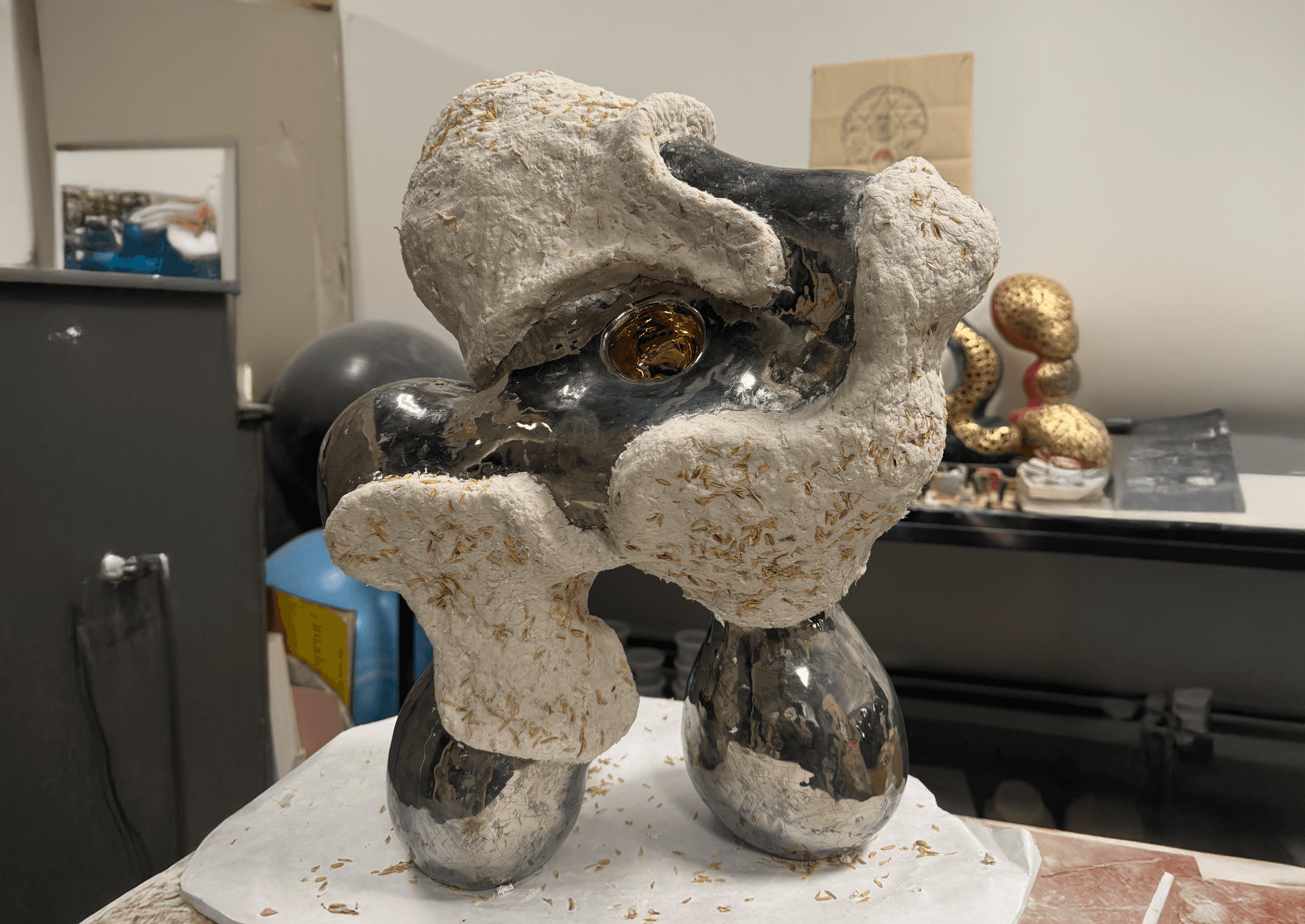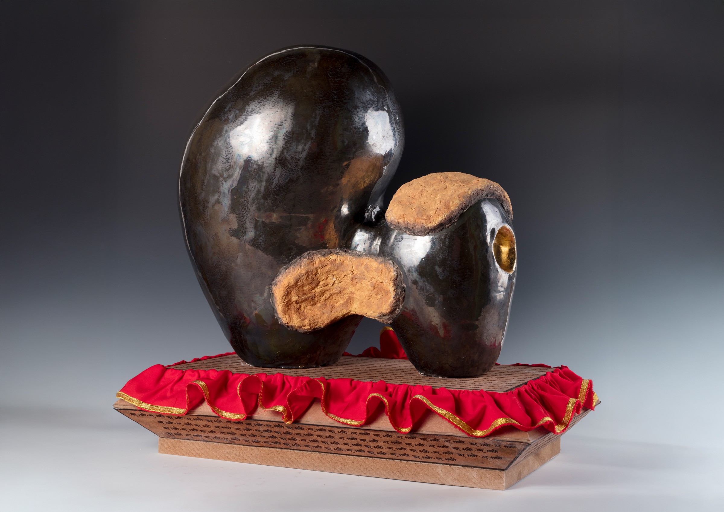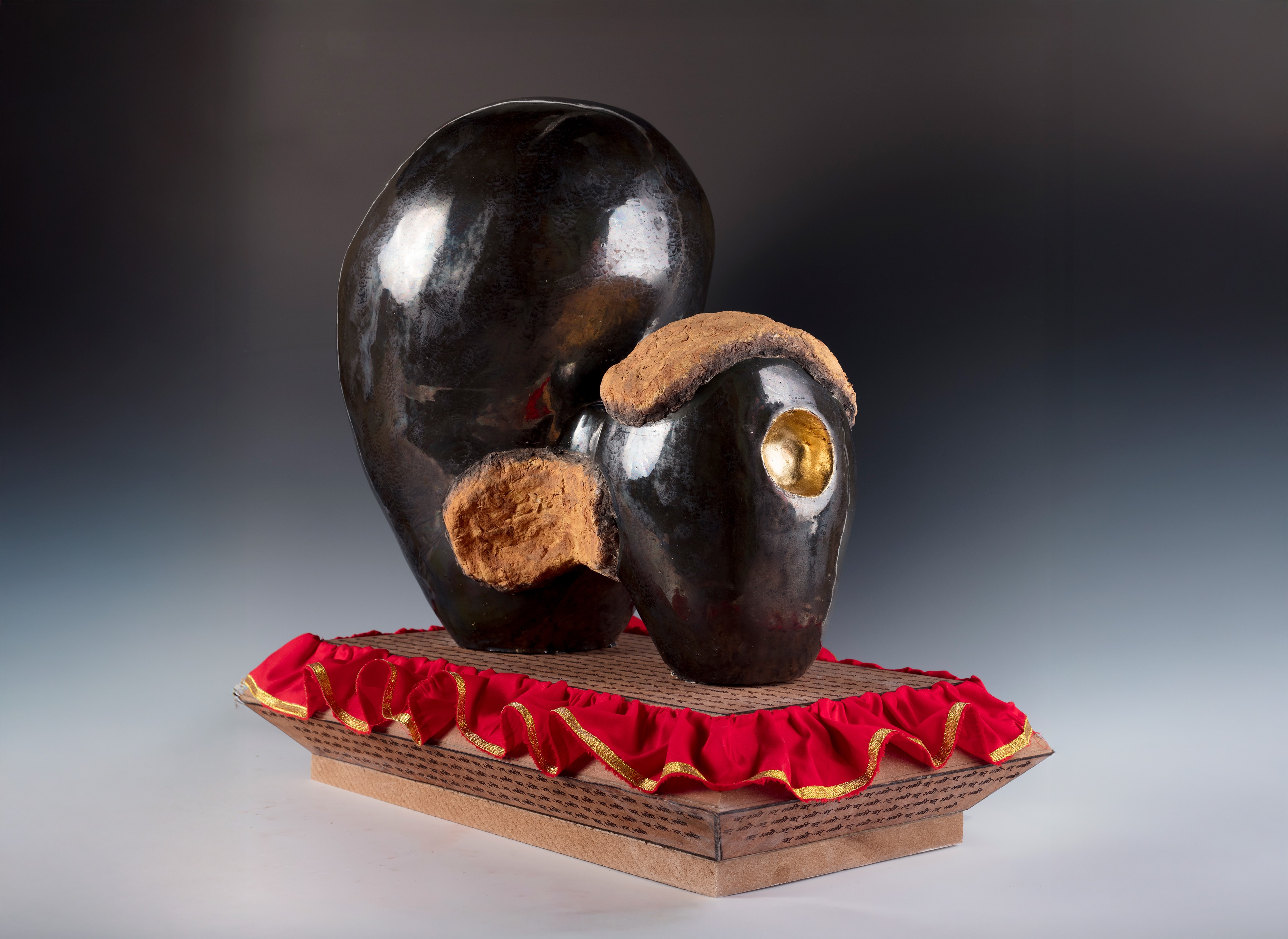 The architecture and rituals of Nepal express an ancient language, crafted through the unity of natural materials and layered histories. Growing up surrounded by these settings, I was involved in the sacred spaces where rituals and daily life merged. It created an environment that felt less like religious duty and more like a way of being. The presence of Sanskrit scripts, and traditional sculpture represents more than heritage. They reflect an identity that continues to shape me, even as I’ve journeyed far from home. These elements, treasured in both physical and spiritual dimensions, connect me to my roots. My work references the traditional Nepalese lost-wax bronze casting technique, drawing parallels as a craft and metaphor. Using the five sacred known metals (gold, silver, zinc, copper, iron) in yogic gestures, I work with layers of metallic colors to express the in-depth radiance. This process resembles mining and uncovering the transformation from roughness to a polished state that reveals hidden potential. Each layer represents the physical materials that connect to something beyond, blending tangible form with spiritual resonance. Through the contrasts of textures and colors, my work invites viewers to reflect on their layers within, honoring both the physical presence and the deeper story it holds.